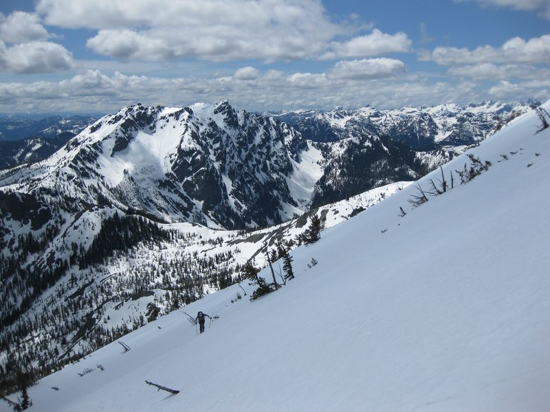 We finally got a sunny Spring ski day. This made for a really fun tour/traverse through some of the nicest scenery of the Central Cascades.