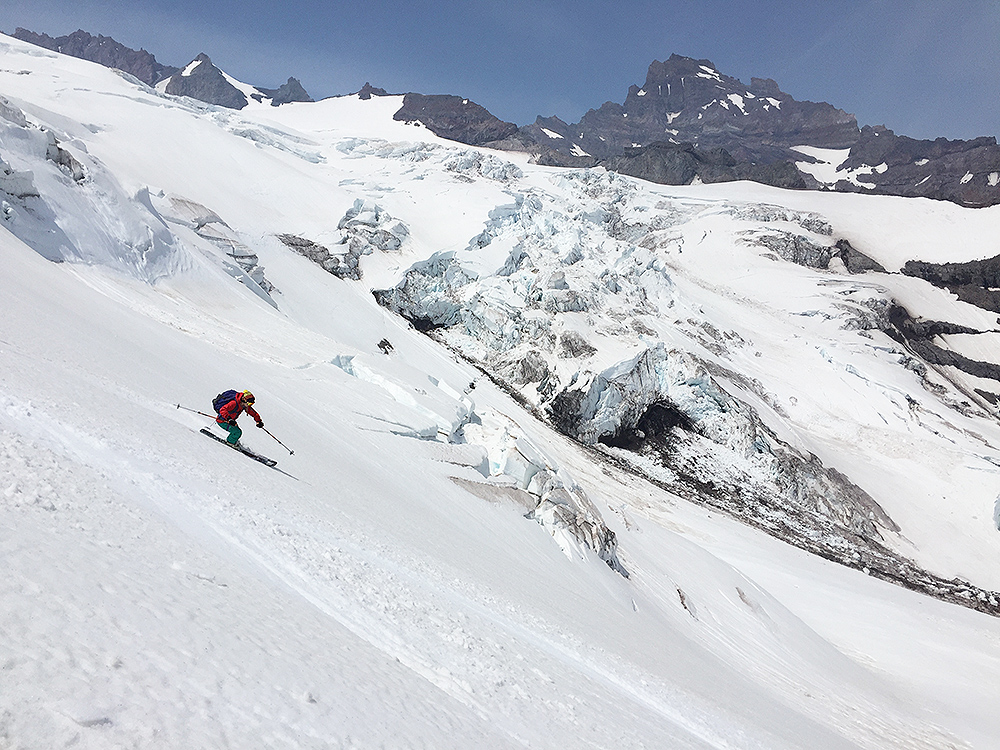 Weather was bluebird with light breeze. We skied east facing slopes from 8400' and found a little stickiness and 2-3" slushy corn. We saw a dozen other skiers and lots of other happy visitors.