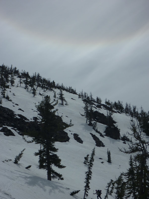 Descended from the N-S col towards Ingalls Lake, then skinned up Fortune. Skied S to SE off Fortune and down to the Esmeralda Basin Trail for the hike out. A beautiful day, only saw 1 climber who had camped out there for several days.