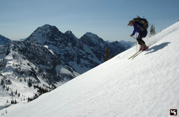 A fine day to be out the N. Cascades! Glad we found some good corn snow on Madison Ave. to make up for the "survival skiing" on the icy/shaded aspects in the Early Winter's Creek drainage ;)