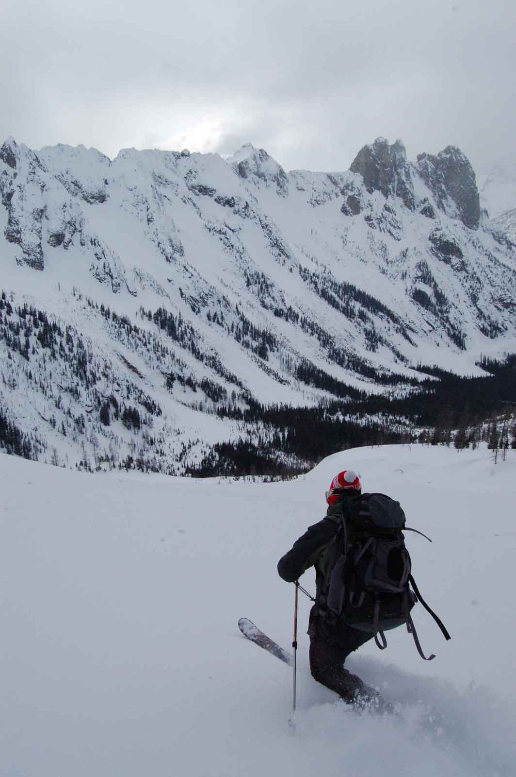 Oh right, and the skin in was about 14 miles starting a mile outside of mazama. Pretty flat and while I didn't because I was borrowing a friend's skis I would highly recommend using kickwax