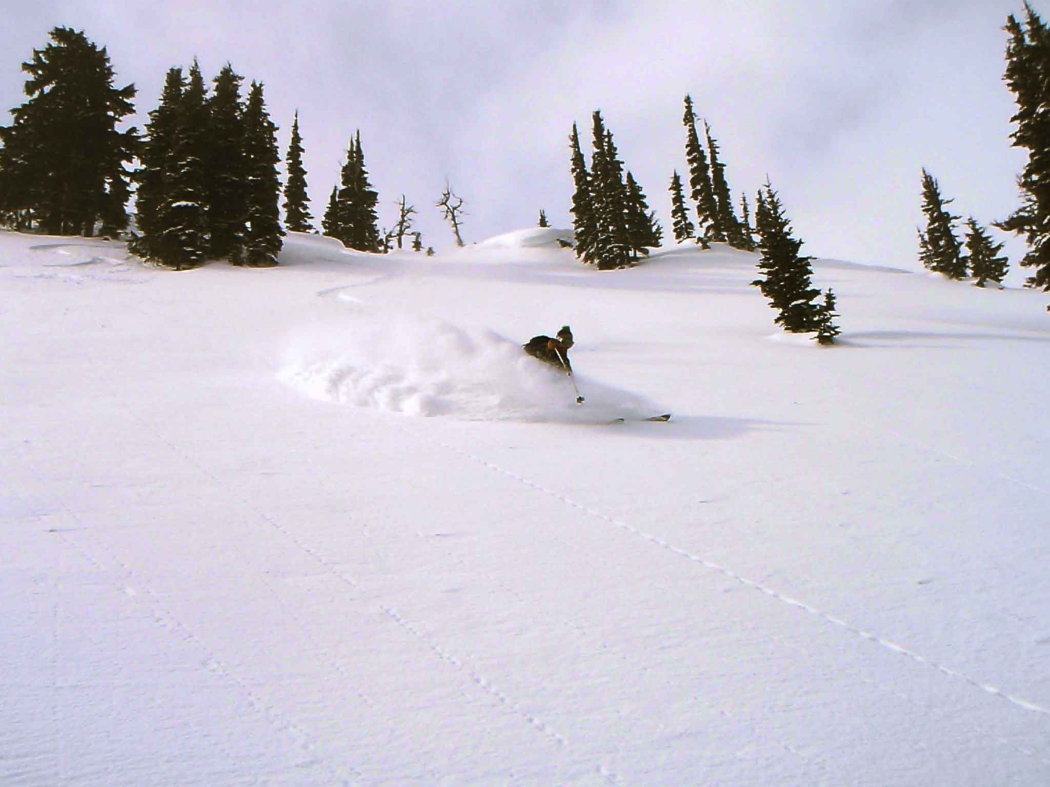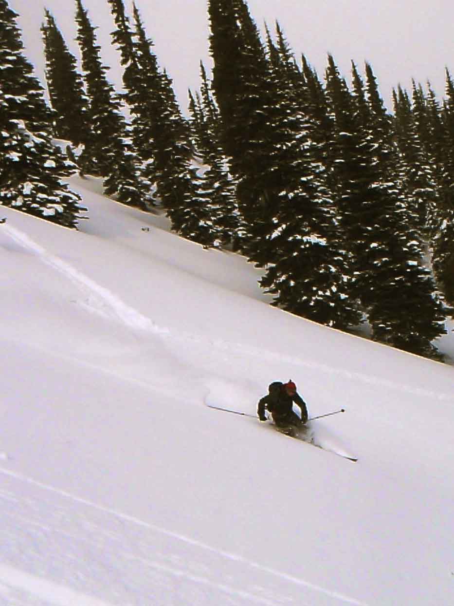 Sorry about riding on your skin track up on the ridge we were looking at dropping into Pickhandle but saw you guys had already hit it so we dropped off the face towards quicksilver.