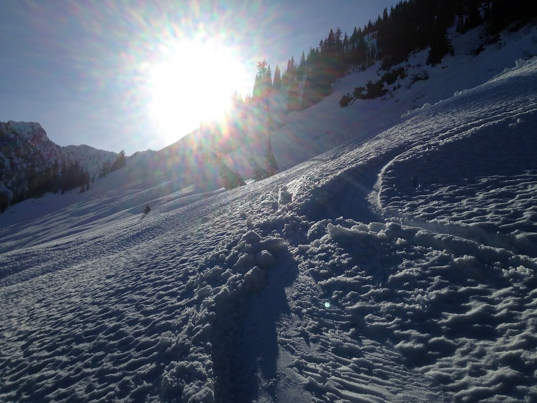 As was pointed out at the end of the day, headlamp to headlamp days in the mountains are fun, but you usually do some climbing in between - we'll have to add that in next time. We actually enjoyed decent snow in treed east facing slopes from 5400 - 3500.