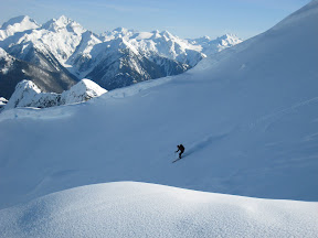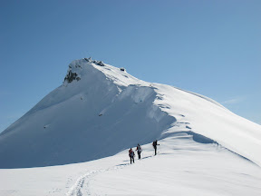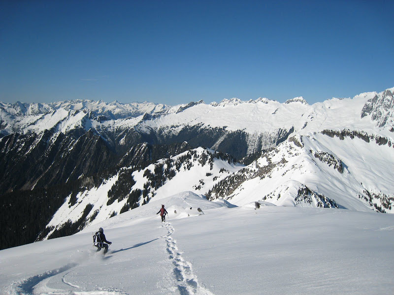 Tagged a couple chutes on the way down. Sluff management was the name of the game. Ran into two other groups, and all seemed to be enjoying the views on such a beautiful day.