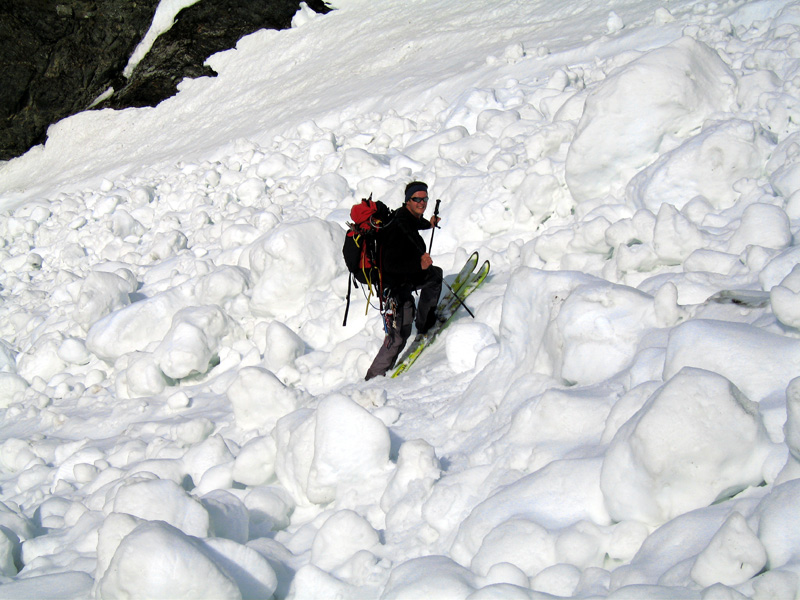 Some pretty big wet-snow avalanches came down while we were up on the mountain . . .