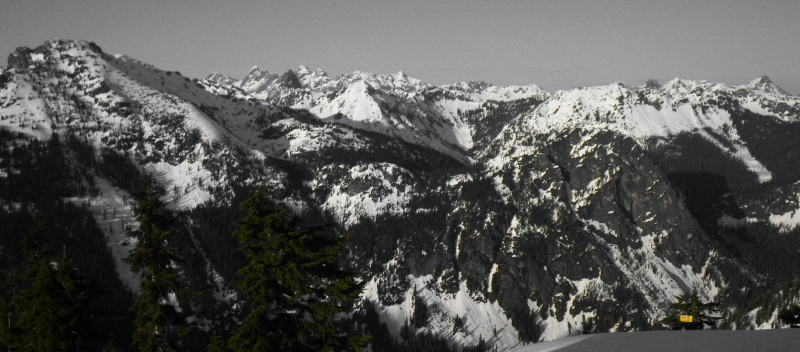 We got out for an after-work jaunt. Still not mature corn, but it's coming. Upper I gets direct sun in the evening this time of year; upper entrance still fat. Lots of snow to the lodge, same's true over at West.