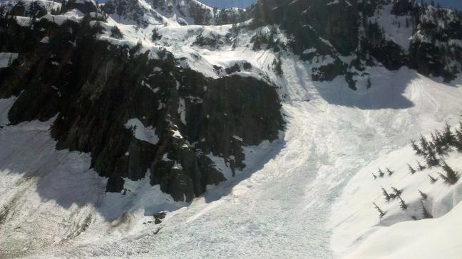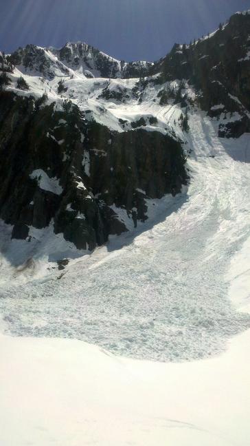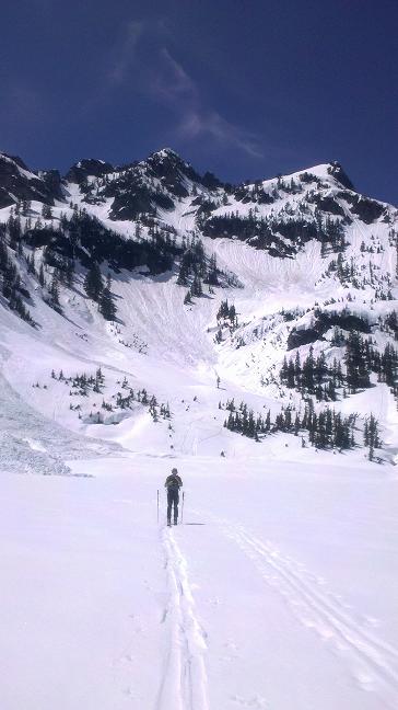 Did this on Friday. Went over Pineapple instead of Bryant Col due to fear of cornice drops off of Bryant. A big one let loose off Hemlock when we were heading up climbers right-side in Pineapple basin, so we did an about-face and headed up over Pineapple. The traverse from the backside of Pineapple to below Bryant Col was sloppy, but safe. We were planning on heading up the steep gully to get on Kaleeten, but again, the warmth and the cornices kept us bee-lining for Melakwa Pass. Only good turns of the trip were off the pass down to Chair Peak lake. We skied a steep gully from there down to Snow lake. The gully was gross. Turn-turn, move aside and let the glop run, repeat, etc. Once down on the lake the destruction was under way - big crowns below the north face of Chair and tons of debris piled high on the lake. See pics.