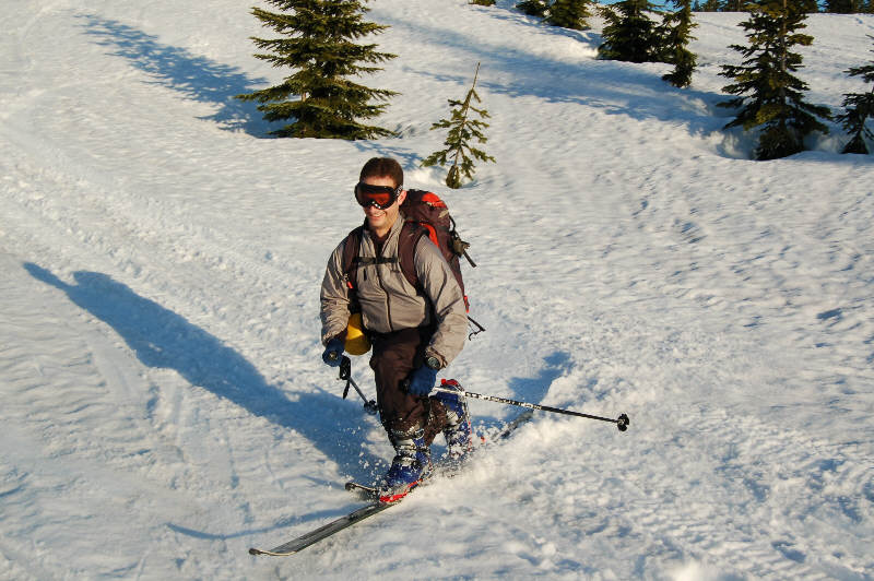 Cass - it looks like the AT binding on your right ski broke OR are you returning from the "Dark Side"?