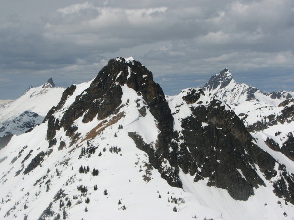 The next day lap kitty and I went up to within a hundred or so feet of Whistler Peak for a nice 3 hour tour. We had this view from our highpoint. I'm terrible with peaks around wa pass- are the ones in the background Golden Horn and Tower?