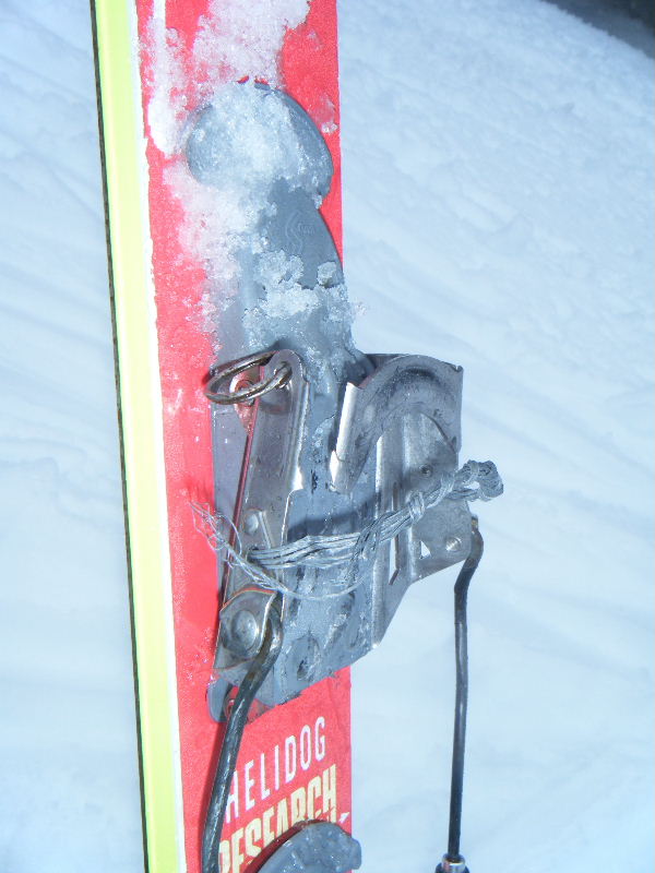 I had a binding break (see picture) about half way through the day and had to lash it up with wire. (I carry the necessary materials for repear from many years of gear failure:)) It worked so well i kept skiing.