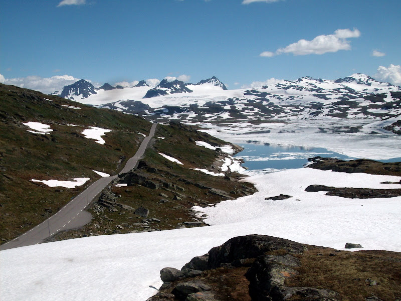 I agree, summer in Norway is a great place to be. I was over there visiting family last month and got a chance to tour around the fjords outside of Bergen. Never made it up to the Fogelfonna, but did have a chance to drive over the highest pass in the country, the Sognefjellet. There is some excellent summer ski country accessible right from the highway (see photo). Wish I took my skis!