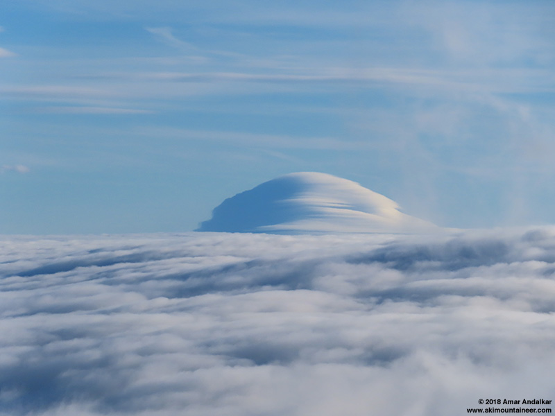More zoomed view (about 270mm equivalent) from 9900 ft of Mount Adams enveloped in a lenticular cloud.