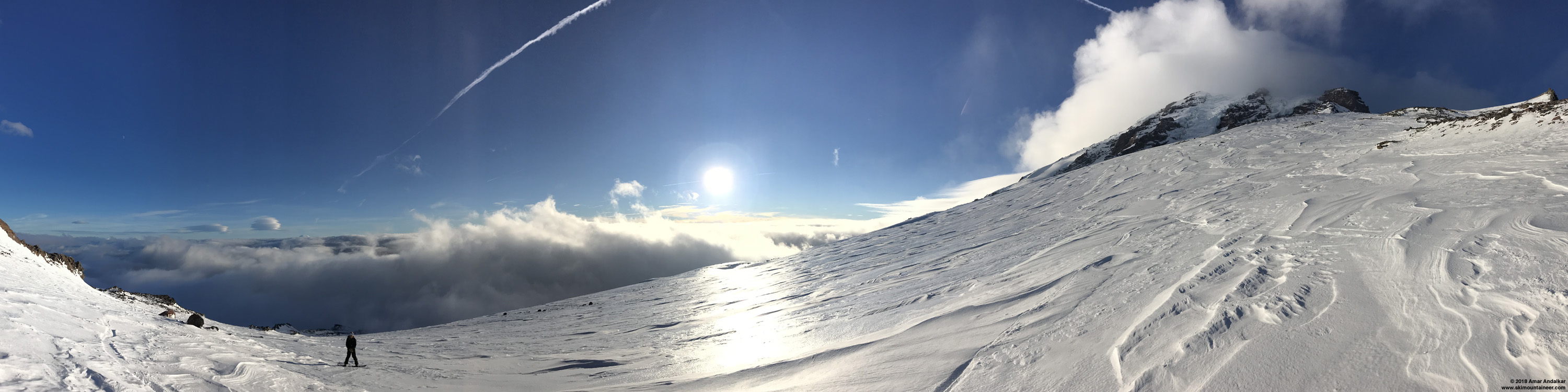 Nice to get an unexpectedly outstanding sunny day on the Mountain, and serendipitously ski some pseudo-firnspiegel too!