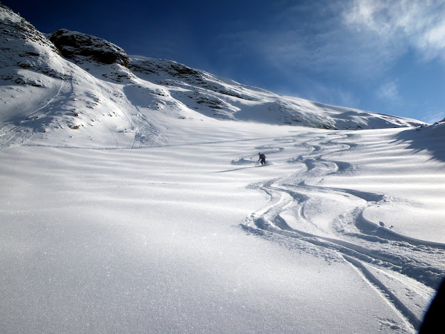 Not wanting to make the long trek up to Heliotrope Ridge again, my wife and I ventured out to Ptarmigan Ridge. I was amazed to see a single skin track made by only one or two people, the place was pretty much untouched. The snow from the storm Wed night was still very good, 6-8" of powder with a little hoar frost on top. There were no sun effects on north facing terrain but anything facing the south had a hearty sun crust. There isn't much skiable south facing terrain anyway right now. The snow should still be in good shape tomorrow too as it was still great when we left around 3:00PM. Only 8 people ventured out there today so there is plenty left to ski. Pick your lines wisely and stick to the summer snow unless you enjoy the feeling of rocks scraping your bases. Finally, anything below artist point is pretty tracked out.