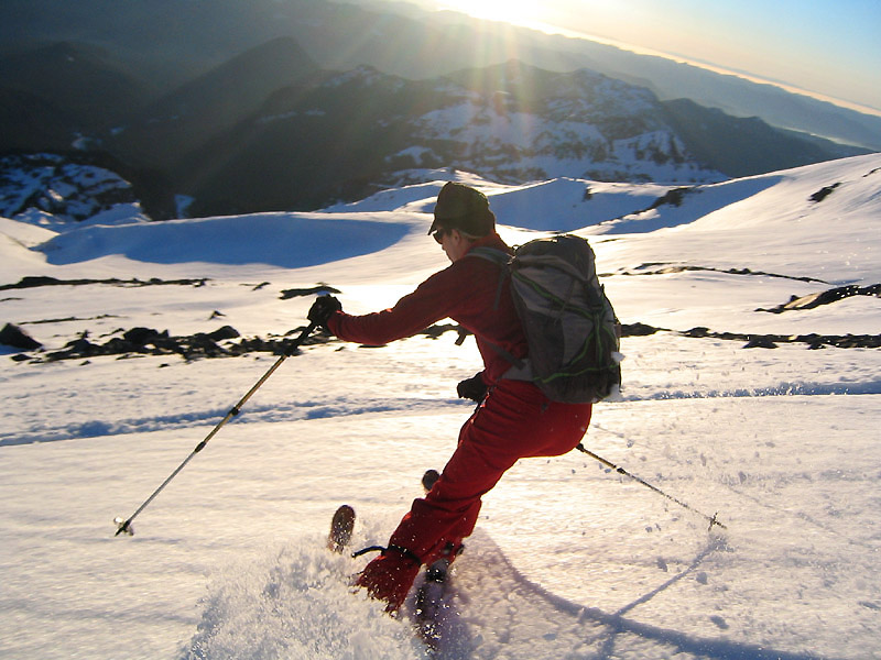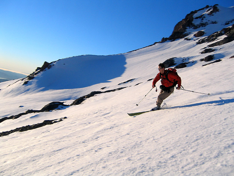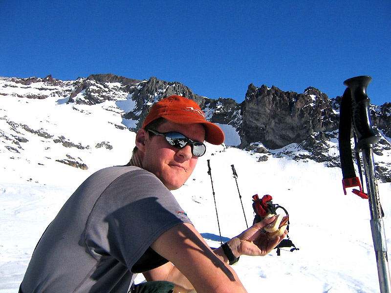 The hike up in Van Trump park was a lot of fun and very scenic...a welcome change from Muir. After multiple breaks we stopped at 9200 feet and decided so ski back down around 3:30 pm. Snow conditions were variable, at times great, at times bottomless mush.