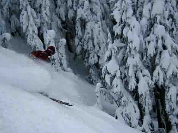 Calm weather, gradually clearing to mid day, then clouding over and snowing by the time we headed home. The fresh snow from a few days ago now has been settling but still was great 12" of NW powder on a heavier 6" on a firm base. The snow was slightly lighter on north slopes, very little wind affected snow exists. Tonight Mother Nature is scheduled to erase all trace of human travel and renew the slopes with a foot of fluff. Enjoy tomorrow, the final day of liftless skiing at Stevens for a while.