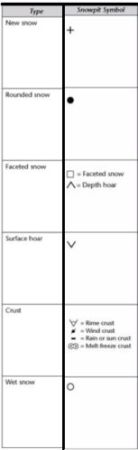 AndyH, is there a good reference for what the symbols in your pit cross-section mean? I'm away from my copy of "staying alive in avalanche terrain" book and can't remember the symbols offhand :)