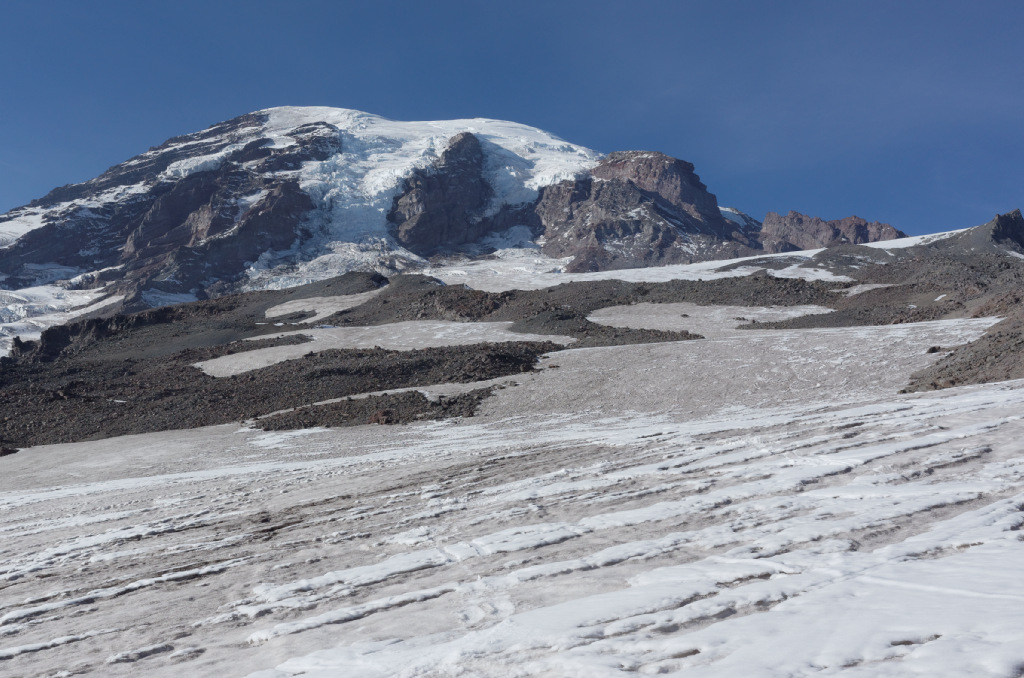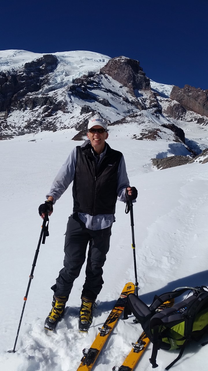 October has typically been my least favorite ski month, not because there's never good skiing, but I rarely seem to hit it. Saturday was a lucky day! All of the gritty suncups and nastiness have been buffed by recent storms, resulting in a baby-bottom smooth white finish on all of the fabulous rolling intermediate terrain from Camp Muir down to Pebble Creek. By staying off of the boot path it was possible to get over 2000 vertical feet of prime cruising! Race-ready hardpack for the first 1000 ft. or so, transitioning to sugar corn hero snow down low. I can't believe how few people took advantage of it! One of my most fun days on Rainier (but I have a short memory). Month 143 in the books with a smile, I hope November is kind to us and then it's eight "easy" months!