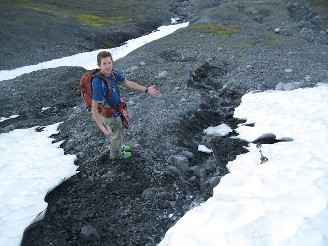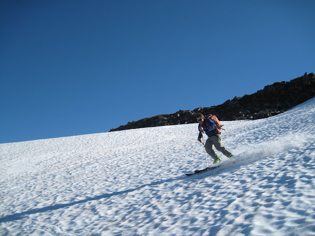 We hiked to the next patch with some firmer sun cups.At the bottom of the run, Mike noticed