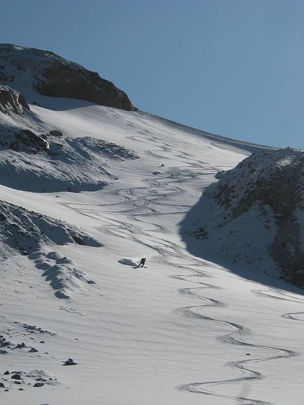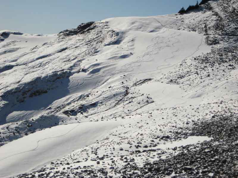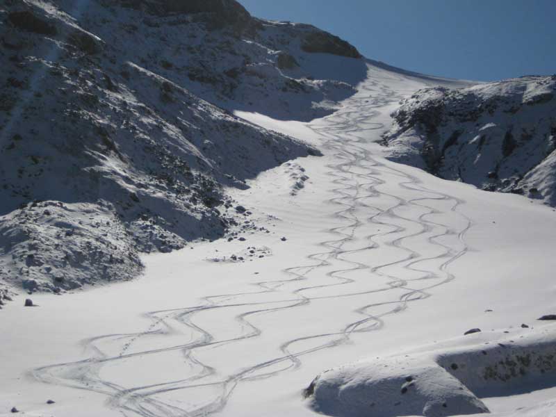 Just so we are talking about the same slopes, I was referring to the what I call the hairpin turn snowfield above. We used only 440 vf of the snowfinger that I met you on. It drops east from Camp Kiser; I didn't think that your group went that far along Ptarmigan Ridge.