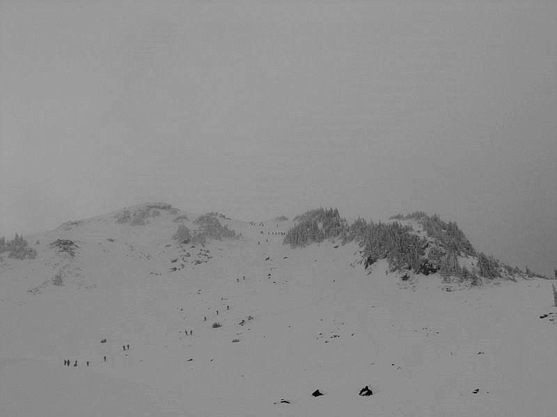 Met up with my buddy Chris and fellow Telemarker Lisa and her split-boardn' friend Jim. Found droves of people itchn' to bust the gates open at Longmire when all of a sudden 10 or 15 tree huggin' Suby lovin snow crazies made a mad dash for their WRX's and the race was on!!!