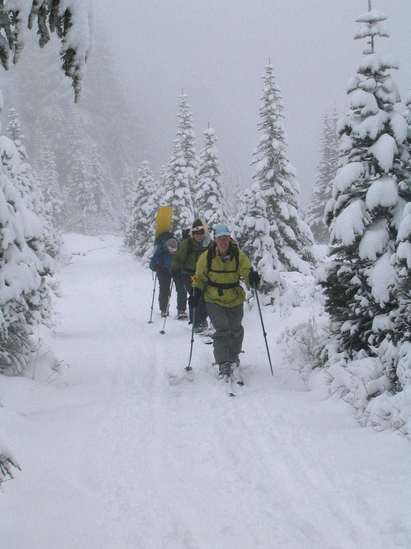 However, we skinned from the parking lot, and skied more or less continuously back. Don't take your best skis, though.
