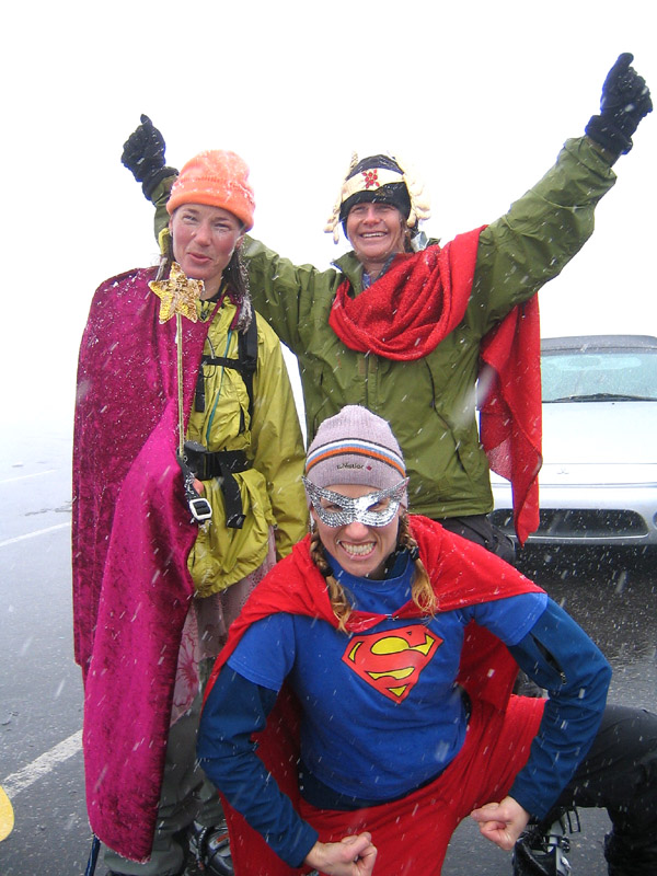 i'm on my way to the other side. even with a cape on, yesterday's trudge up the mt. in the slowshoes was a slog--and might proove to be my last. hard to watch all those skiiers glide by so nonchalant and carefree--if you can't beat 'em, join 'em! :)