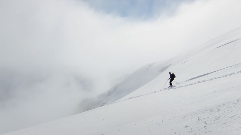 Here's a good shot of Silas at the fog level around 8K feet in the Pow.