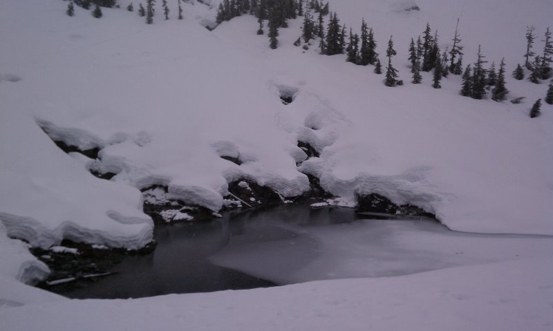 JPH and I attempted a chair peak circumnavigation on Saturday with a super early start. Weather was not raining with visibility alternating from blue sky peaks to sub 50 ft fog. Skinning into source late was super fast hardpack, one we started climbing there was a noticeable crust with slushy snow underneath, this was the general condition everywhere except in debris fields. We attempted to climb the couloir up the west side of pineapple basin and ount the crust to hard for skiing but too soft for bootpacking, so revised the plan to go over pineapple pass. At the pass JPH had a binding screw loose and we decided the snow was not worth continuing the tour so skied back to the car. The crust was mostly supportive for acceptable turns with the occasional punch through. We need some more fluff!