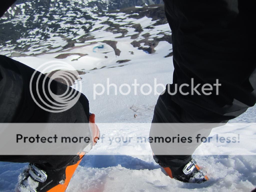 We were camped at Robin Lakes over the weekend and took a picture of you guys on Saturday morning (well, sort of). Anyway, here's a look at Mt. Daniel from the east. Plodding along of foot I was envious that you had those snowfields all to yourselves.