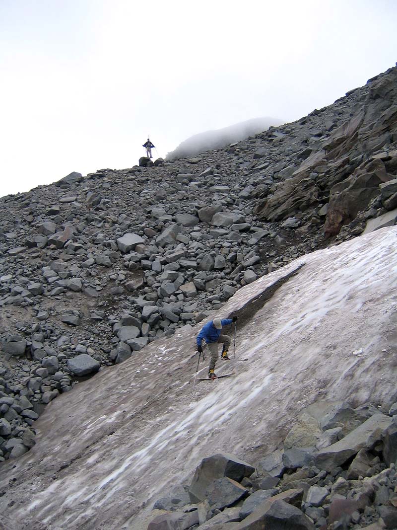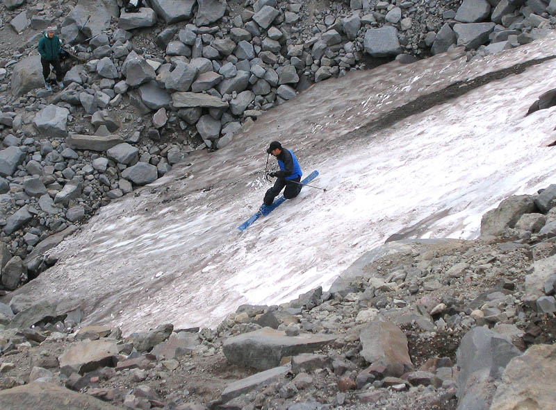 You guys were on the Pinnacle "glacier"? I can't think of what else that would be 'cause it's not "The Stash". I was checking that out on Sept 3rd and ended up "skiing" 30 ft of blue, dirty, crevassed to death ice on the Paradise (TR coming soon...)