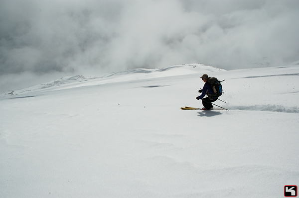 What a fortuitous day to have been placed on my calendar. During September and October, I never know what the conditions will be like, just which day I’ll get to go ski. Jeff Renner called in a chit with the gods, apparently, because we had 8 inches of new snow to use last Sunday. Now, this wasn’t pow, but it beat the shit out of having the shit beat out of us by Muir’s infamous late season sun cups.