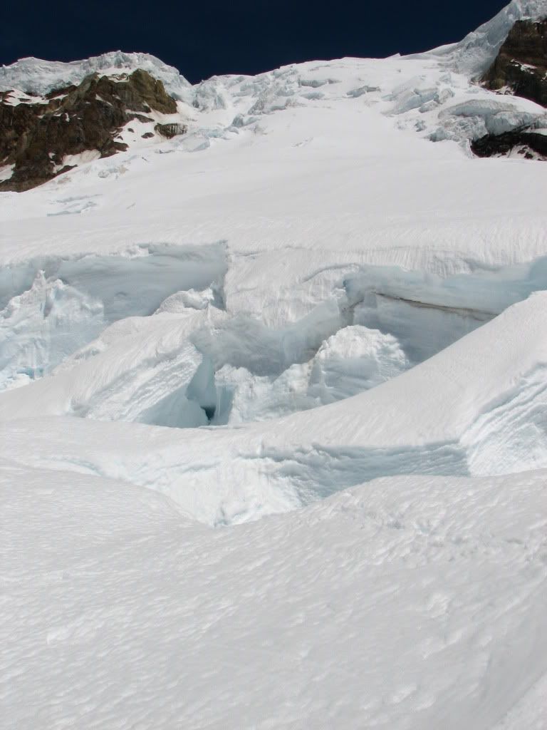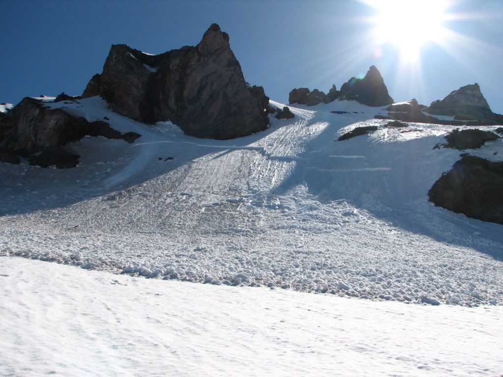 I was curious though...did you two navigate the Kautz between the upper and lower ice falls as depicted in our pics, or did you drop below the lower ice fall and then back up? This looked like another viable variation, but it was only obvious to us through hindsight.
